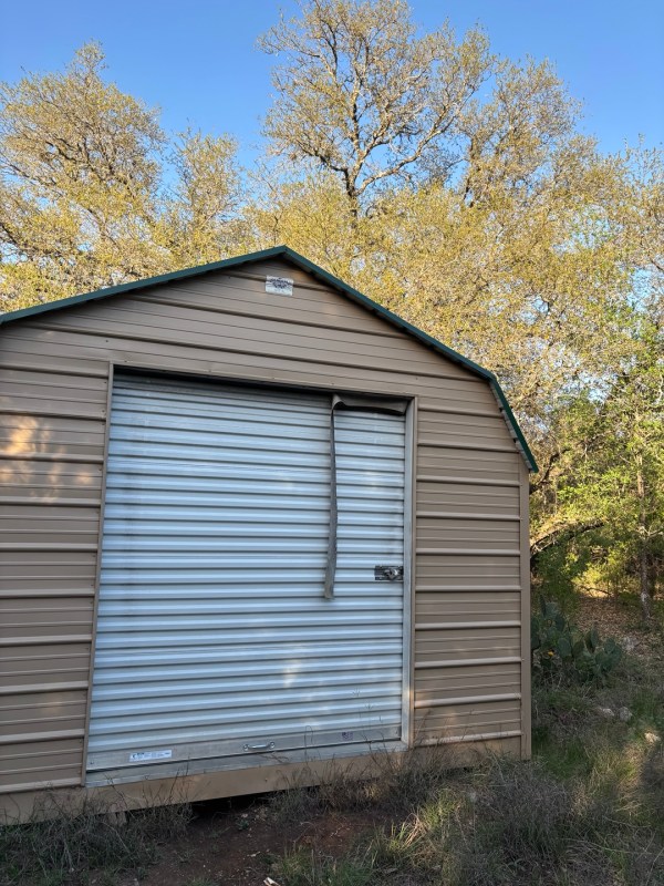The shed is a little portable trailer about a five minute walk into the woods. Things in the shed are all bulky and heavy.